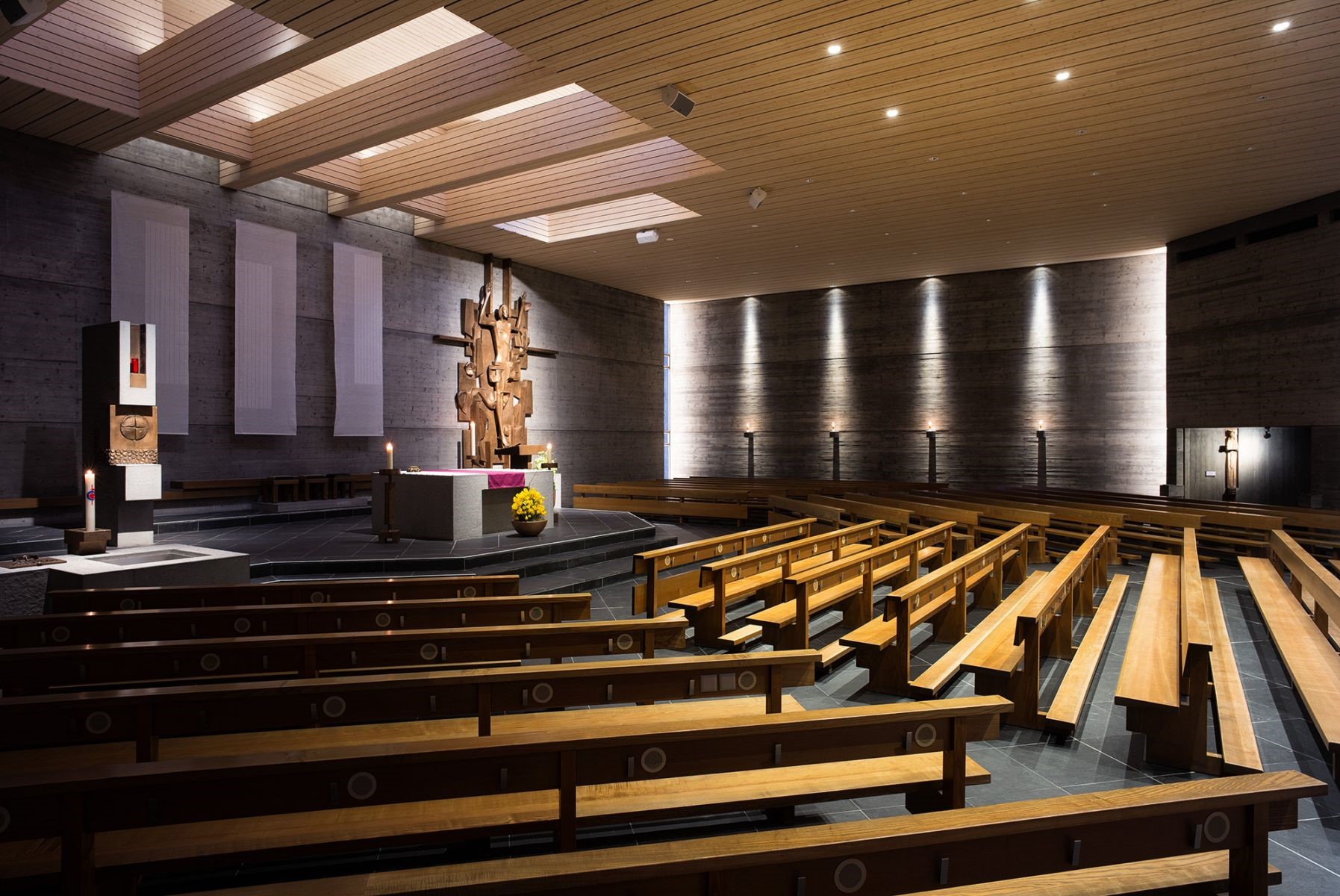 همانطور که میدانید، تجهیزات روشنایی به کار رفته در اینگونه اماکن بایستی به گونهای باشد که نه تنها تمامی فضا از روشنایی کافی و مطلوب برخوردار باشد، بلکه در بخشهایی از سالن به خصوص در جایگاه سخنرانی و یا صحنه، سیستم نوری تخصصی لازم و کافی تعبیه شده باشد. بدین ترتیب در اینگونه فضاها دو نوع پرتو نوری حائز اهمیت است، یکی روشنایی عمومی و دیگری روشنایی تخصصی. روشنایی عمومی بدین معنا که کلیت فضا با تجهیزات روشنایی ویژه مزین و نورانی شود. این نوع روشنایی اغلب برای بخش های کلی سالن، راهروها، جایگاه حضار، لابی و مانند اینها به کار میرود. سیستمهای تعبیه شده نوری معمولا بر سقف، دیوارها به صورت نورهای مخفی استفاده میشود. علاوه بر روشنایی عمومی، روشنایی تخصصی نیز در سالنها مورد استفاده قرار میگیرد. روشنایی تخصصی نیز بایستی با سیستمهای روشنایی متمرکز که بیانگر جلوههای نوری خاص از صحنه هستند، طراحی شوند که مستلزم یک طراحی نورپردازی از پیش تعیین شده است، بدین ترتیب میتوان از پروژکتورها، لامپهای رنگی تنظیم کننده، نورافکنها و سایر تجهیزات روشنایی مدرن و پیشرفته بهره برد