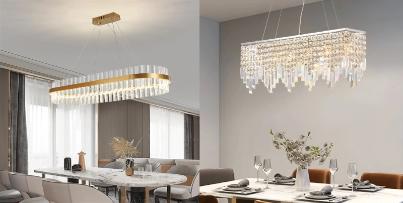 • نکات: برای فضاهایی با سقف پایین‌تر، از لوسترهای خطی کوتاه‌تر و کم‌ارتفاع‌تر استفاده کنید.