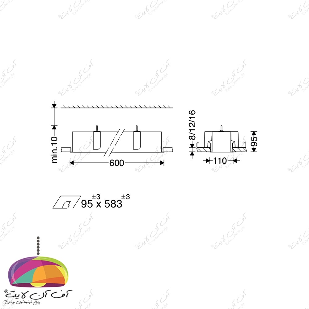 - تطبیق با فضا: اطمینان حاصل کنید که ابعاد برش سقف (57.5 × 9.5 سانتیمتر) با طراحی پروژه سازگار است.