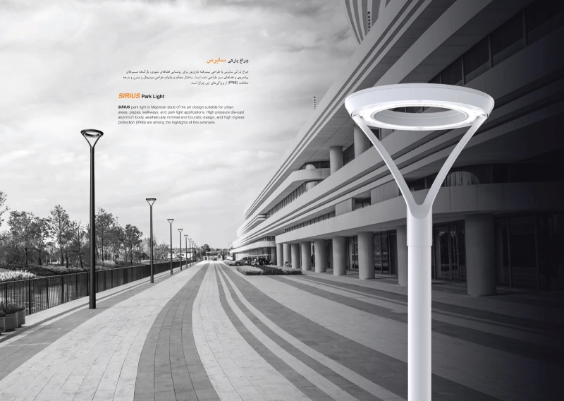 - مقاومت بالا در برابر شرایط محیطی: چراغ پارکی مازی نور با استاندارد IP66 در برابر آب و گرد و غبار مقاوم است و میتواند در شرایط مختلف محیطی استفاده شود.